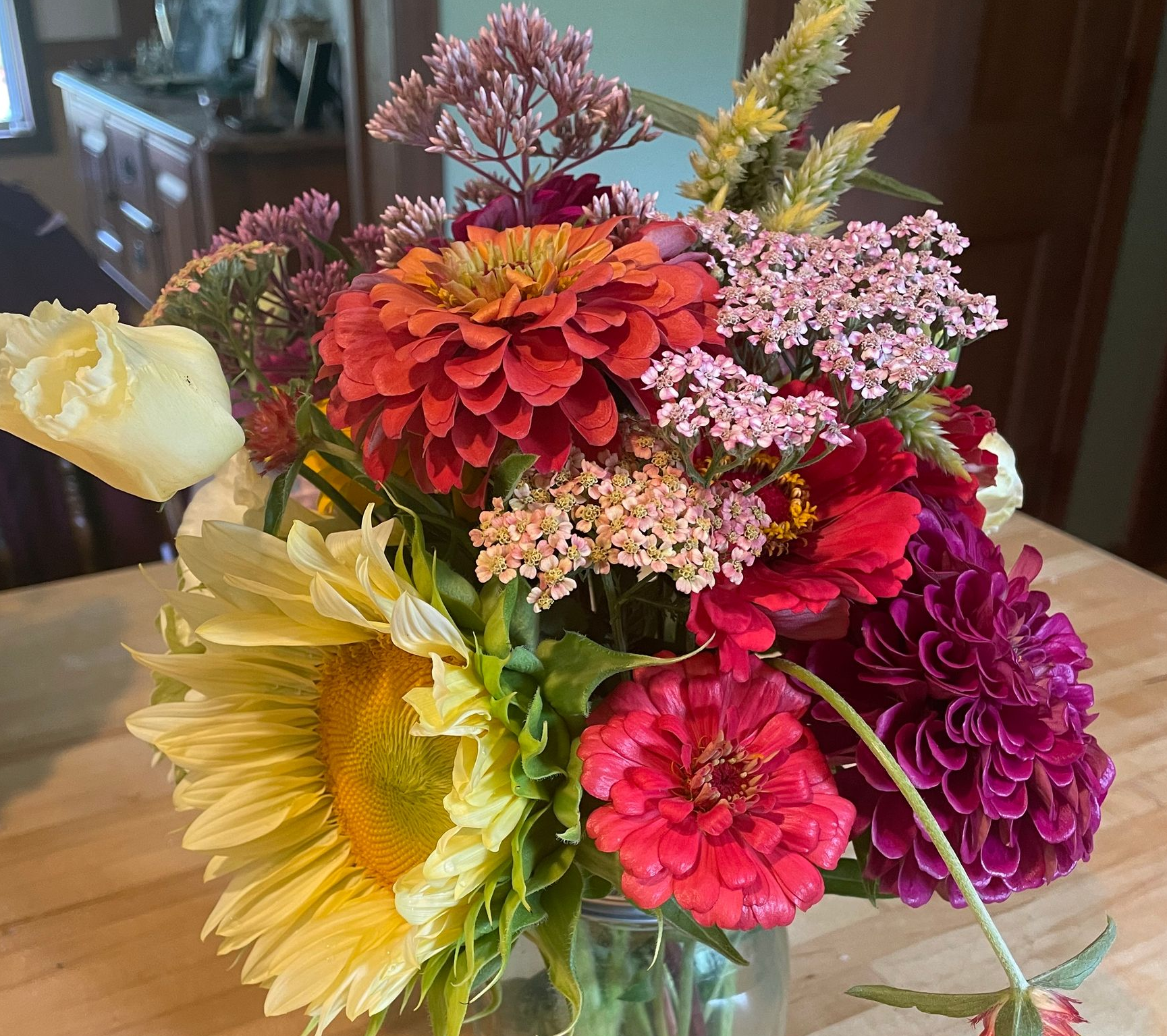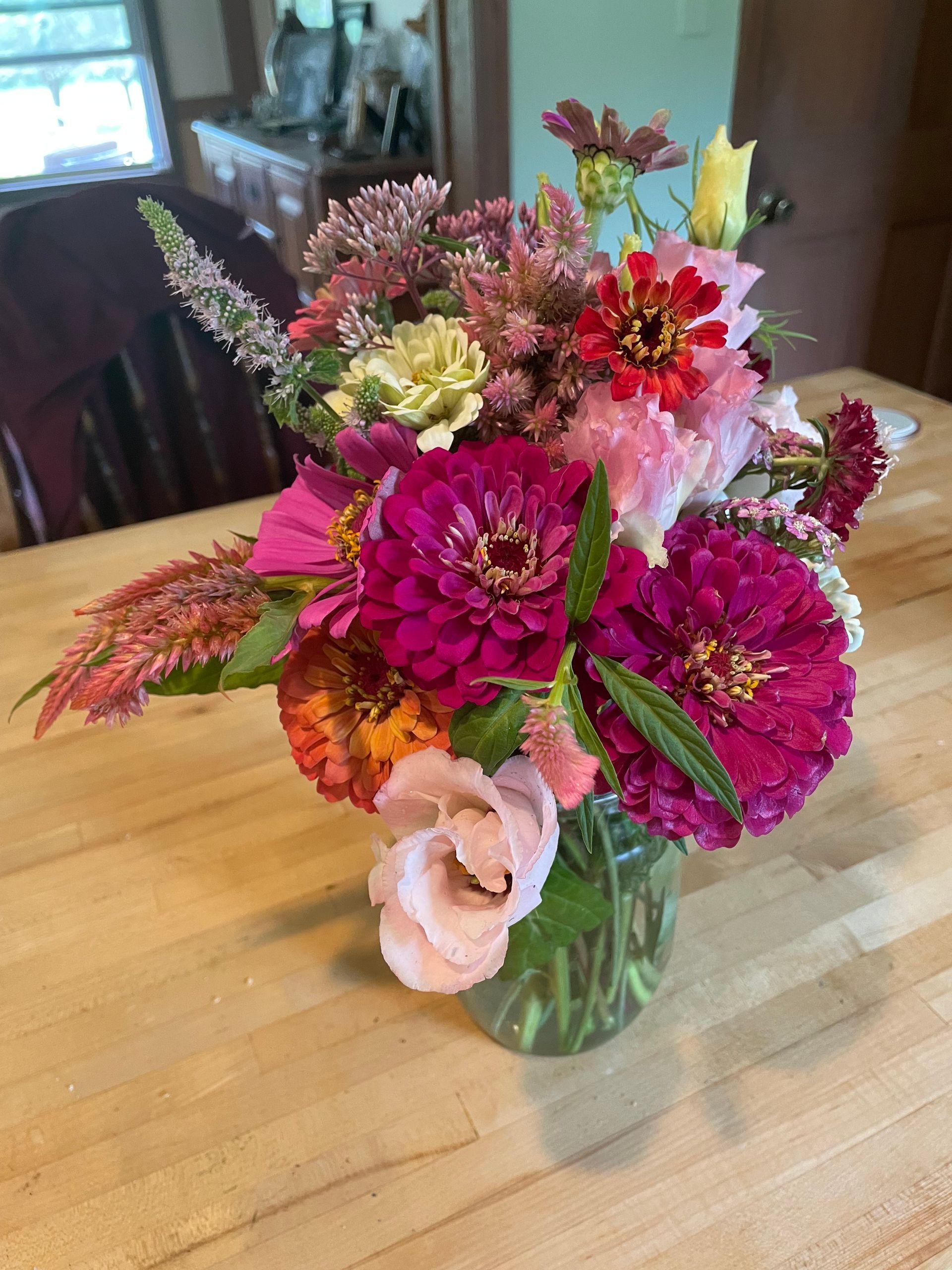 At Mud Pie Blooms, we grow and create beautiful flower arrangements to evoke fond memories and celebrate special moments. From seasonal bouquets to custom event florals, each arrangement features fresh, locally cultivated blooms including snapdragons, zinnias, dahlias, celosia, gladiolas, and chrysanthemums, accented with beautifully textured foliage and herbs.